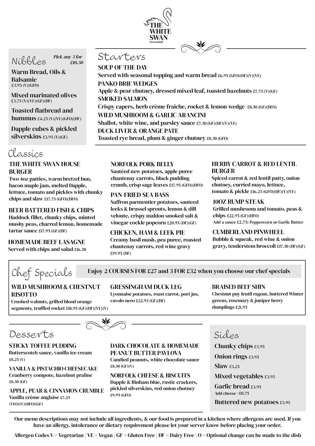 OUR MENU AT THE WHITE SWAN