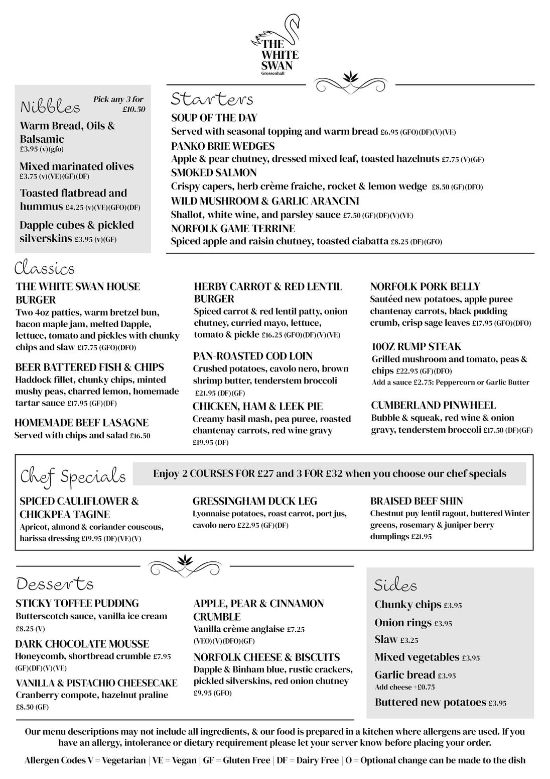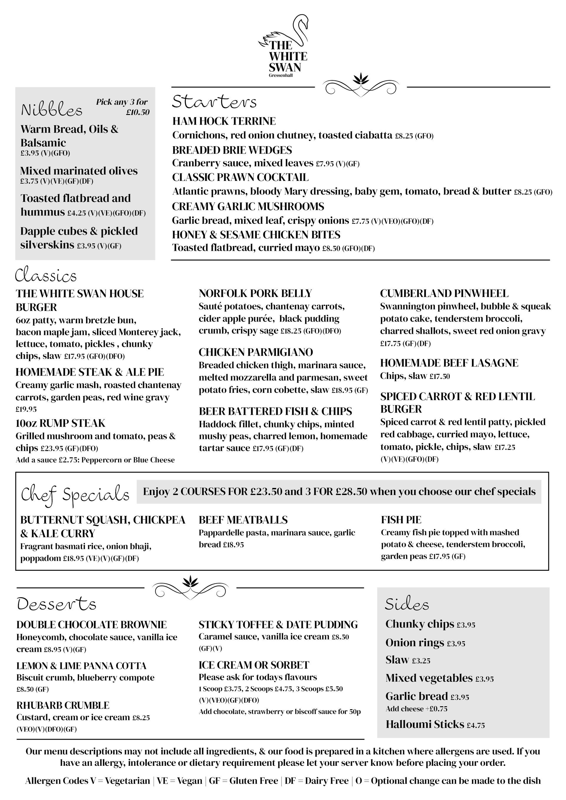 OUR MENU AT THE WHITE SWAN