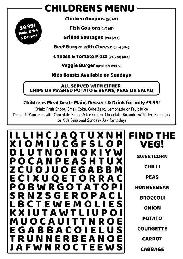 CHILDREN'S MENU AT THE WHITE SWAN